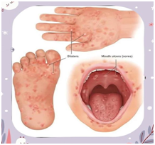 手足口病是一种以手、足、口腔等部位出现皮疹或疱疹为主要特征的儿童传染病,多发生于 5 岁以下儿童,多数患儿预后良好,但少数重症病例可能出现神经系统并发症,需高度警惕。(下左图)
