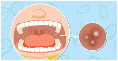 疱疹性咽峡炎则主要表现为咽峡部(包括软腭、悬雍垂、扁桃体等部位)出现疱疹或溃疡,同样好发于婴幼儿及学龄前儿童,患儿常因咽部疼痛出现拒食、流口水等情况,一般无手足部位皮疹,病程相对较短,多数患儿 1-2 周可自愈。(上右图)